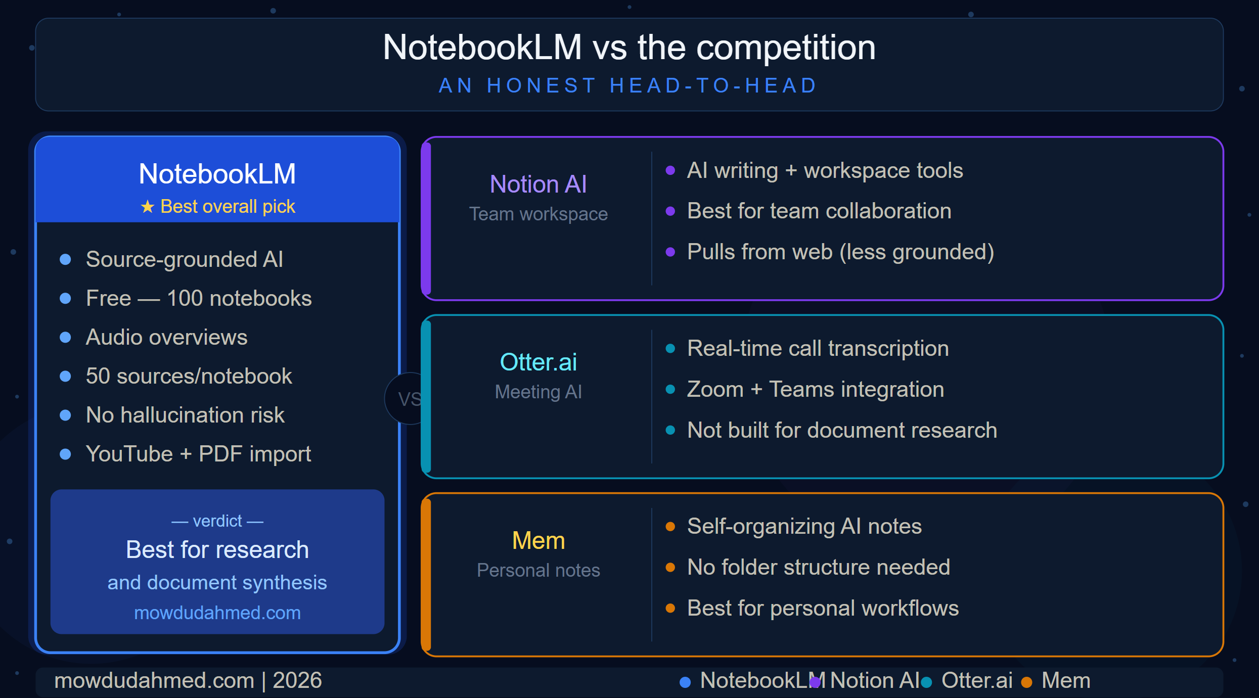 • NotebookLM vs. Notion AI vs. Otter.ai vs. Mem